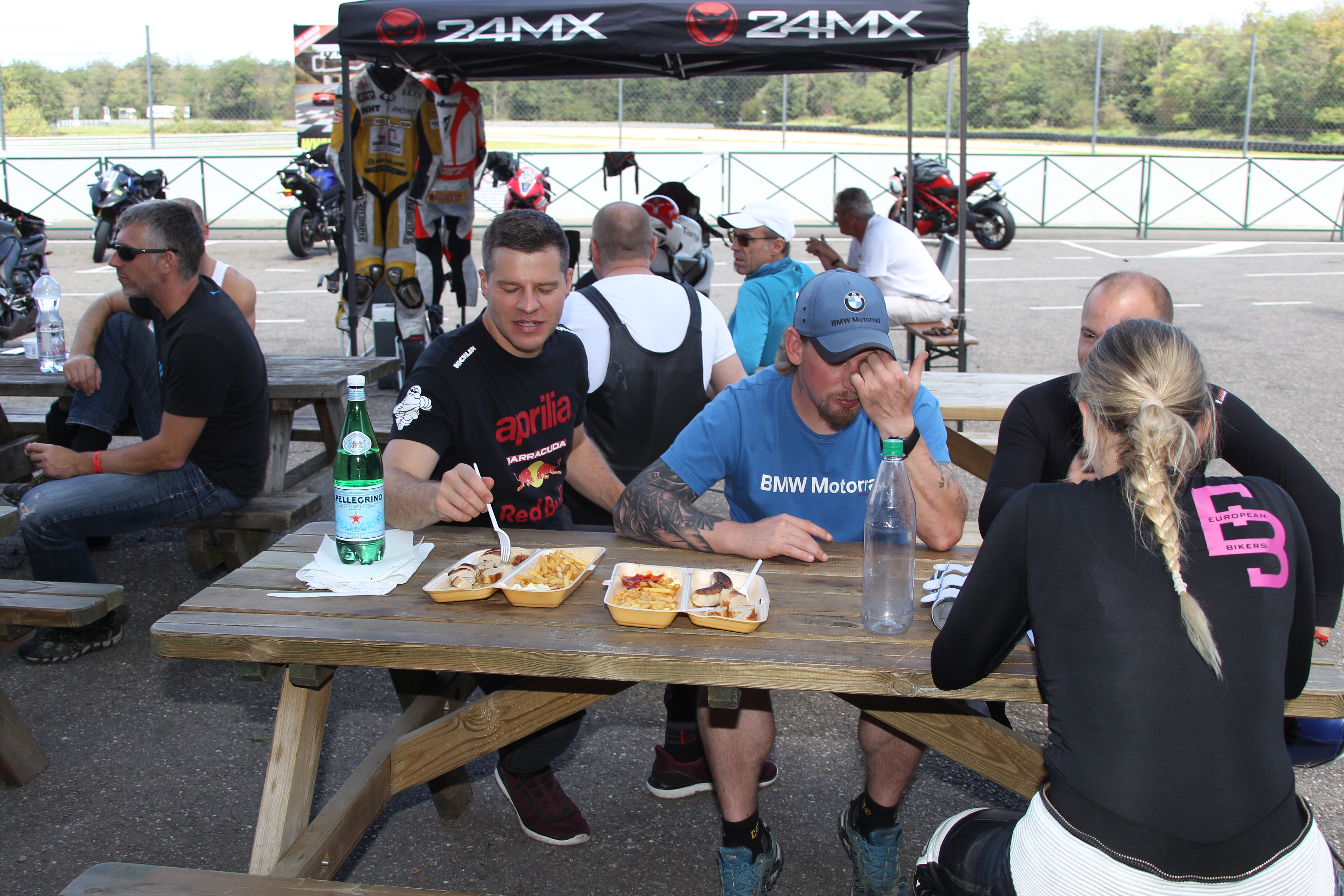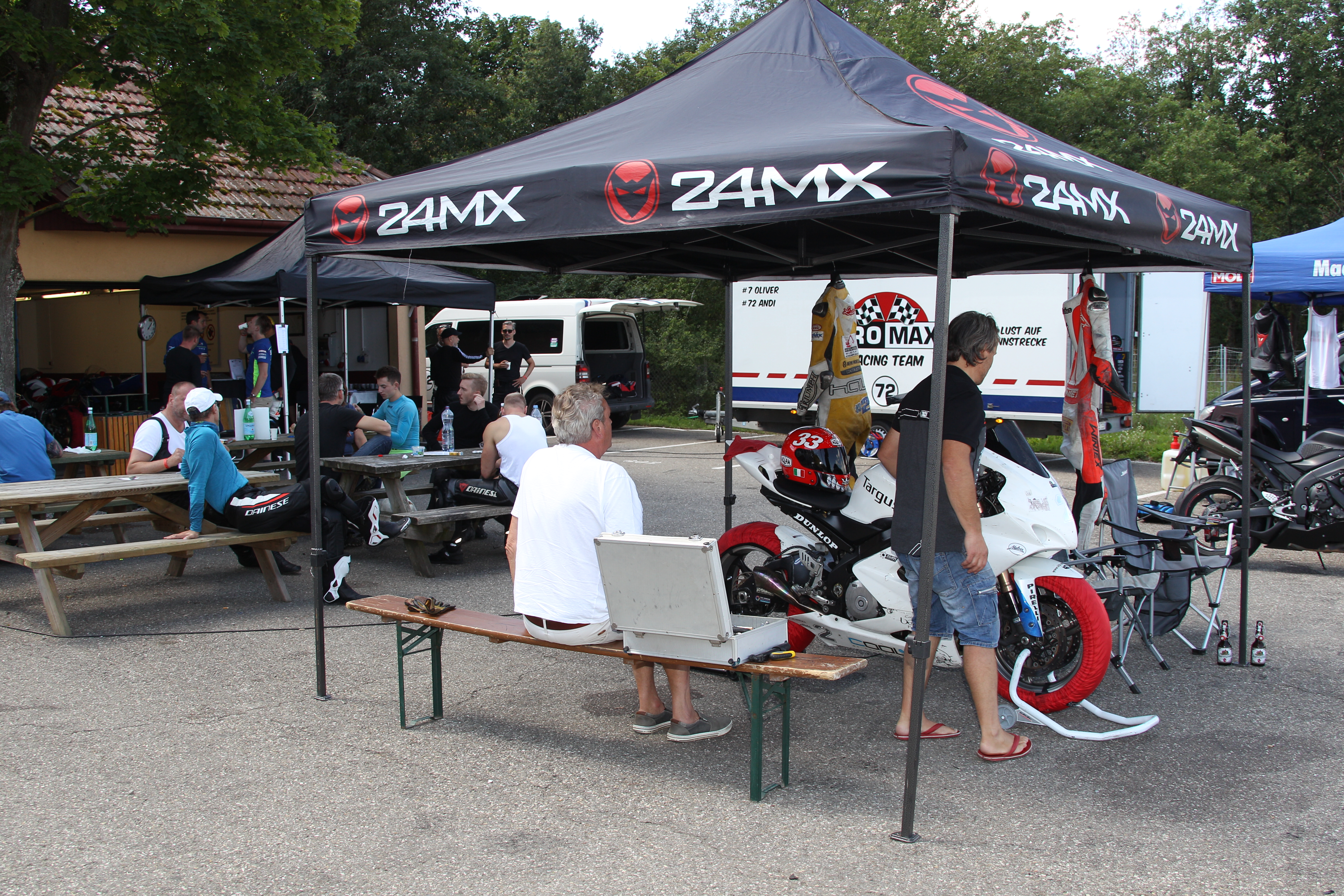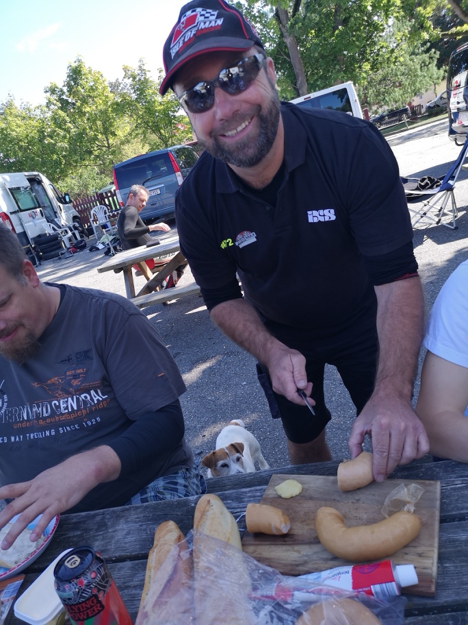 BoxeneinfahrtFahrerbesprechung vor der AnmeldeboxTechnische EinweisungOrientierungsfahrtenReifenmontiergerät ist immer dabeiGruppenschild & AsphalttemperaturTankstelle (Selfservice)Fahrerlager bei EinfahrtFahrerlager im WaldMittagessen! Pizza – Flammkuchen – Burger – Bratwurst – PommesGratis Kaffee bei der AnmeldeboxUli Trescher – Fotoservice Trescher